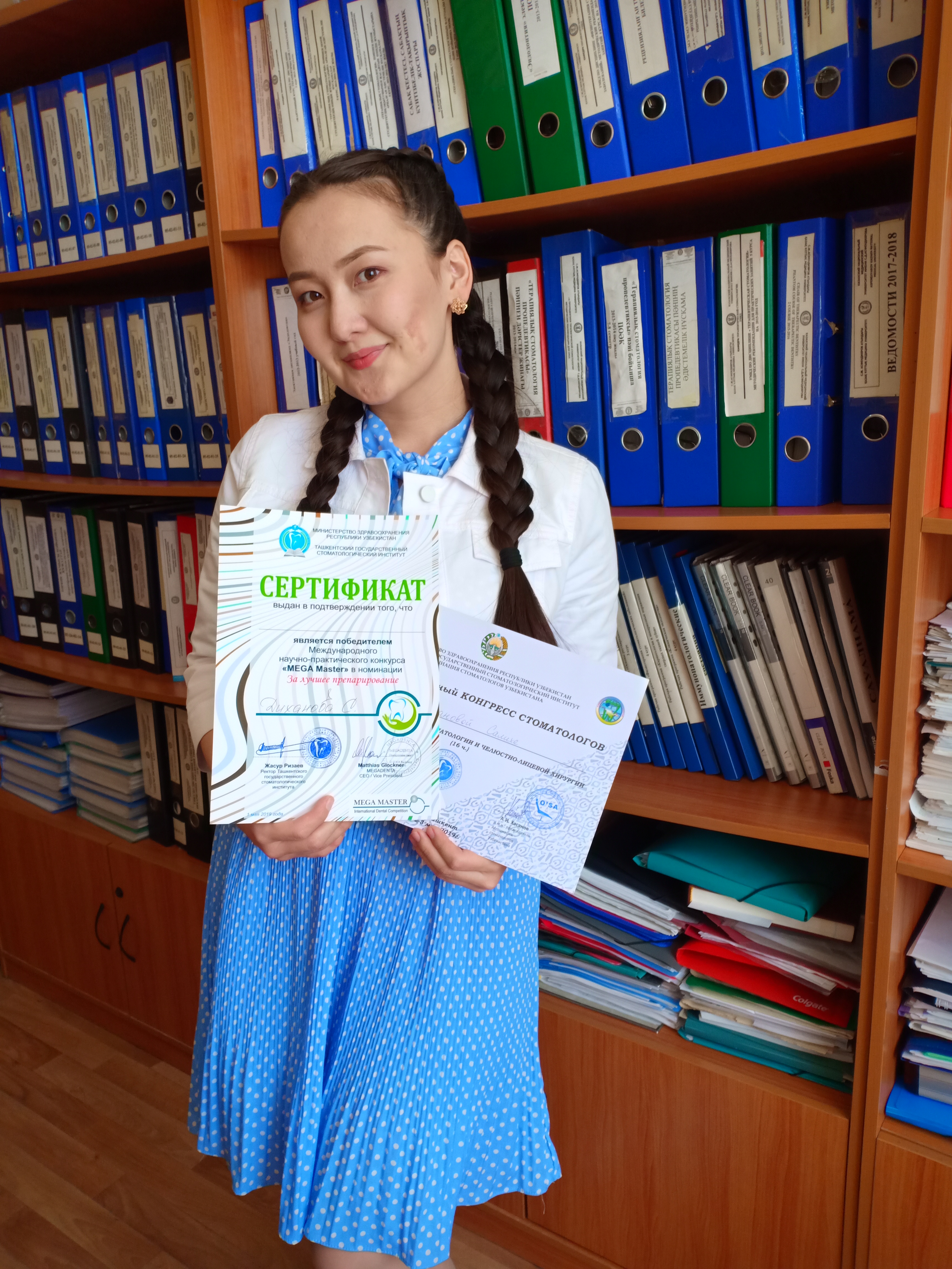 Преподавателями кафедры терапевтической стоматологии АО НМУ им. С.Д. Асфендиярова: к.м.н. Сагатбаевой А.Д., к.м.н. Смагуловой Е.Н., к.м.н. Сухочевой Т.М., во главе с зав. Каф. Профессором Жолдыбаевым С.С. была подготовлена студентка 5 курса Диханова Салиха, для участия в Международной Олимпиаде.